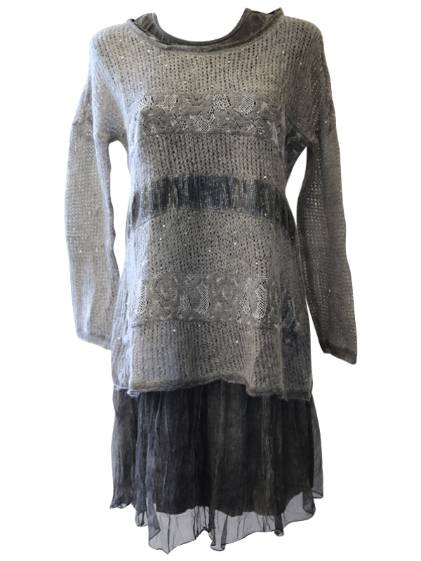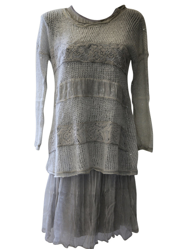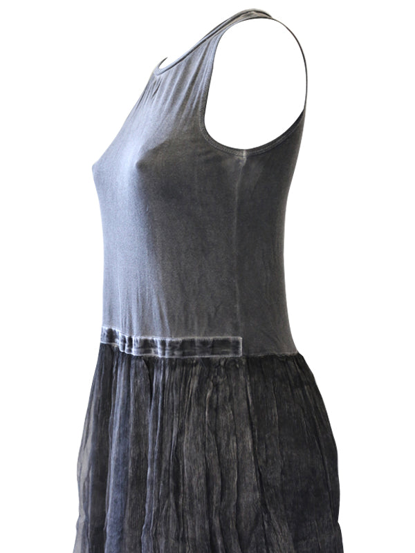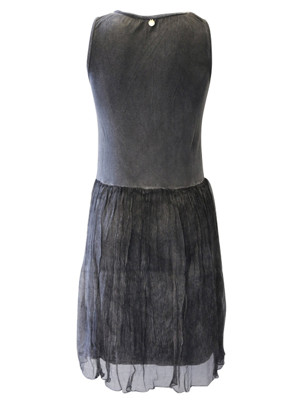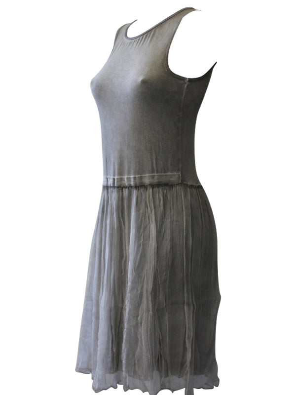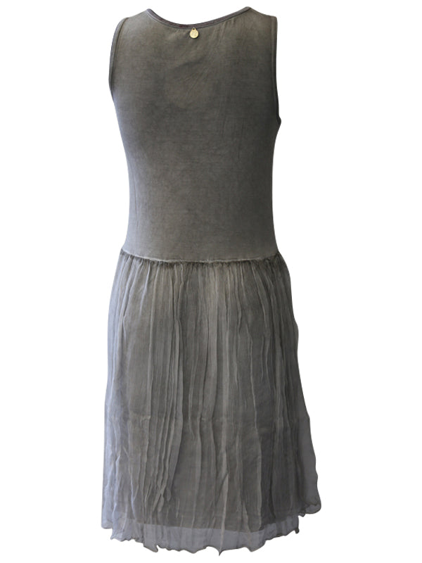 Une touche de ROMANTISME pour la robe Nana Nucci, elle est en jersey viscose dans le haut et soie froncée de couleur crème ( beige) aspect délavé.