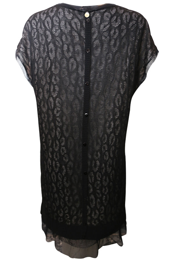 Une maille ajourée noir avec motifs animalier et une coupe droite ample pour la robe Nana Nucci SP400 avec finition bord côté et voile.