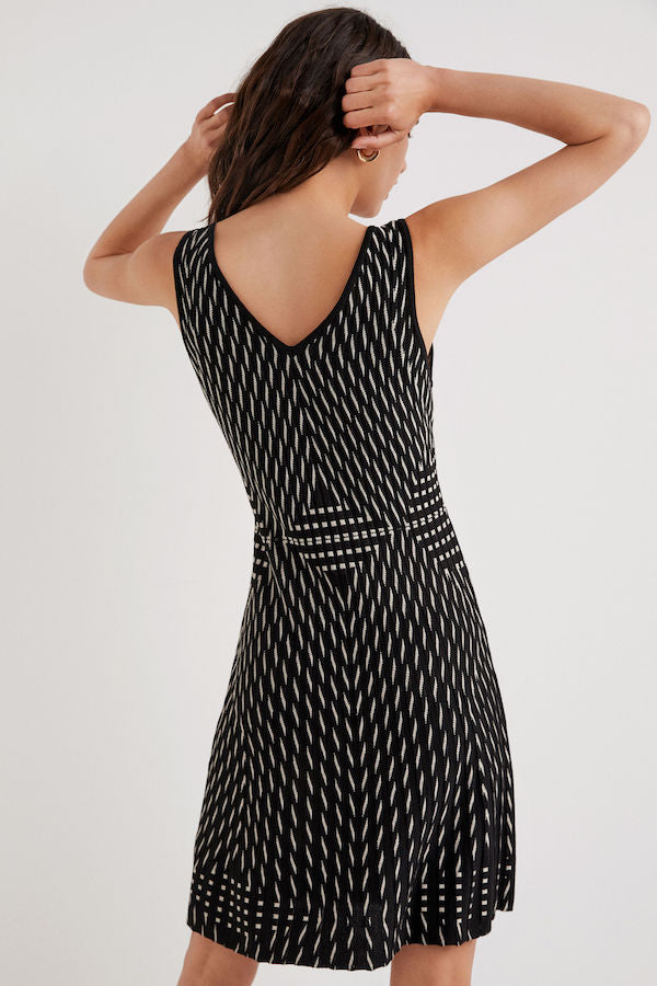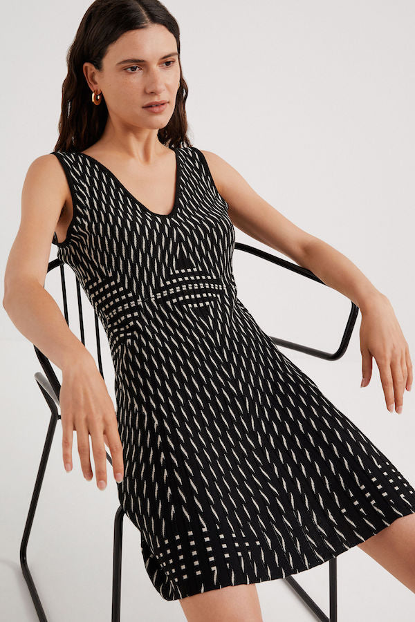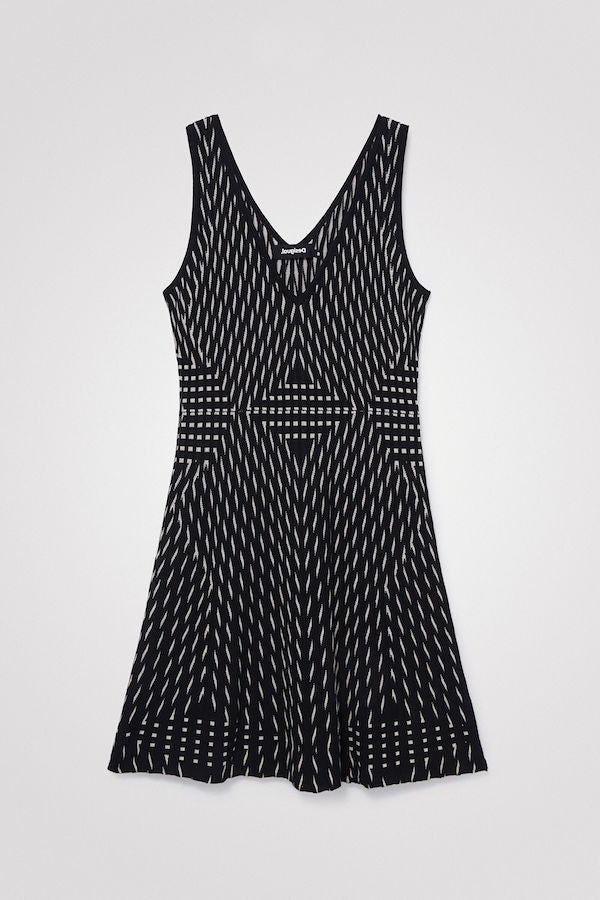 En tissu fluide et léger, la robe patineuse Desigual est en viscose noire avec un imprimé géométrique contrastant all-over.
