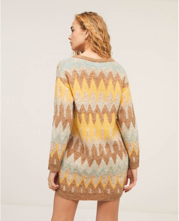 Robe pull jacquard en laine mélangée SURKANA 552ORPU732 10, jaune