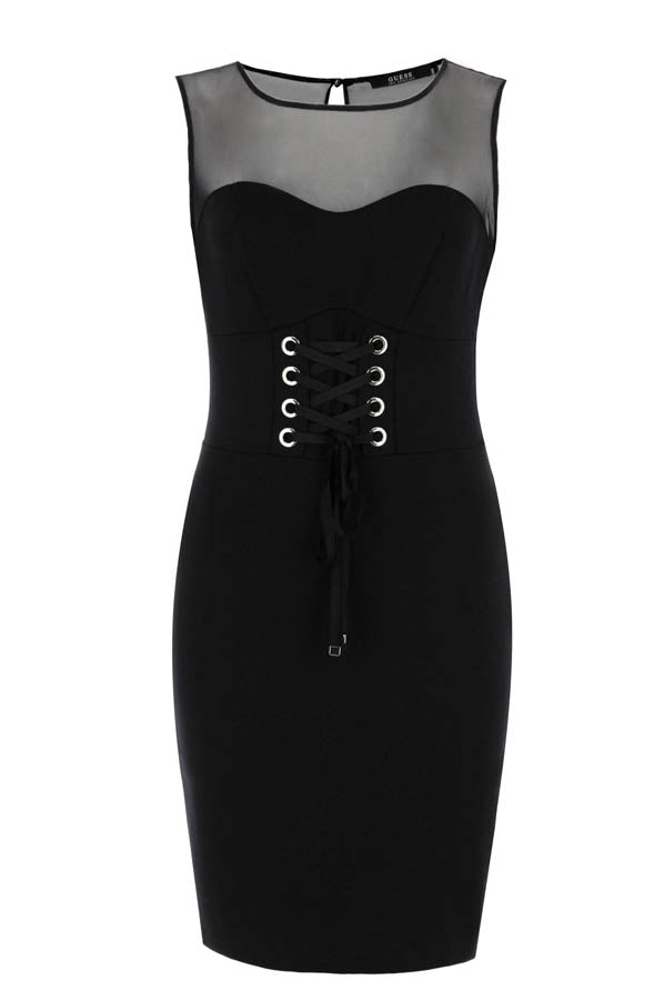Pour un look glamour, adoptez la robe Rosita signée Guess! Elle possède un bustier rehaussé d'un insert transparent, d'un laçage corset sur le devant, petite ouverture au dos fermé par une lichette.
