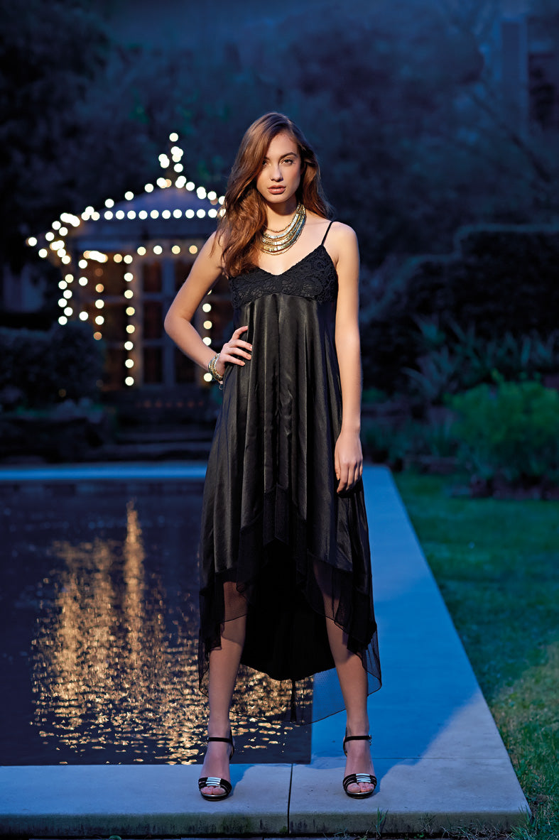 Superbe robe noir asymétrique avec effet dentelles+mousseline.