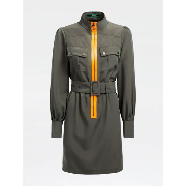Féminine et élégante, la robe Guess est munie de manches longues, d'un col montant avec une fermeture éclair frontale contrastante.