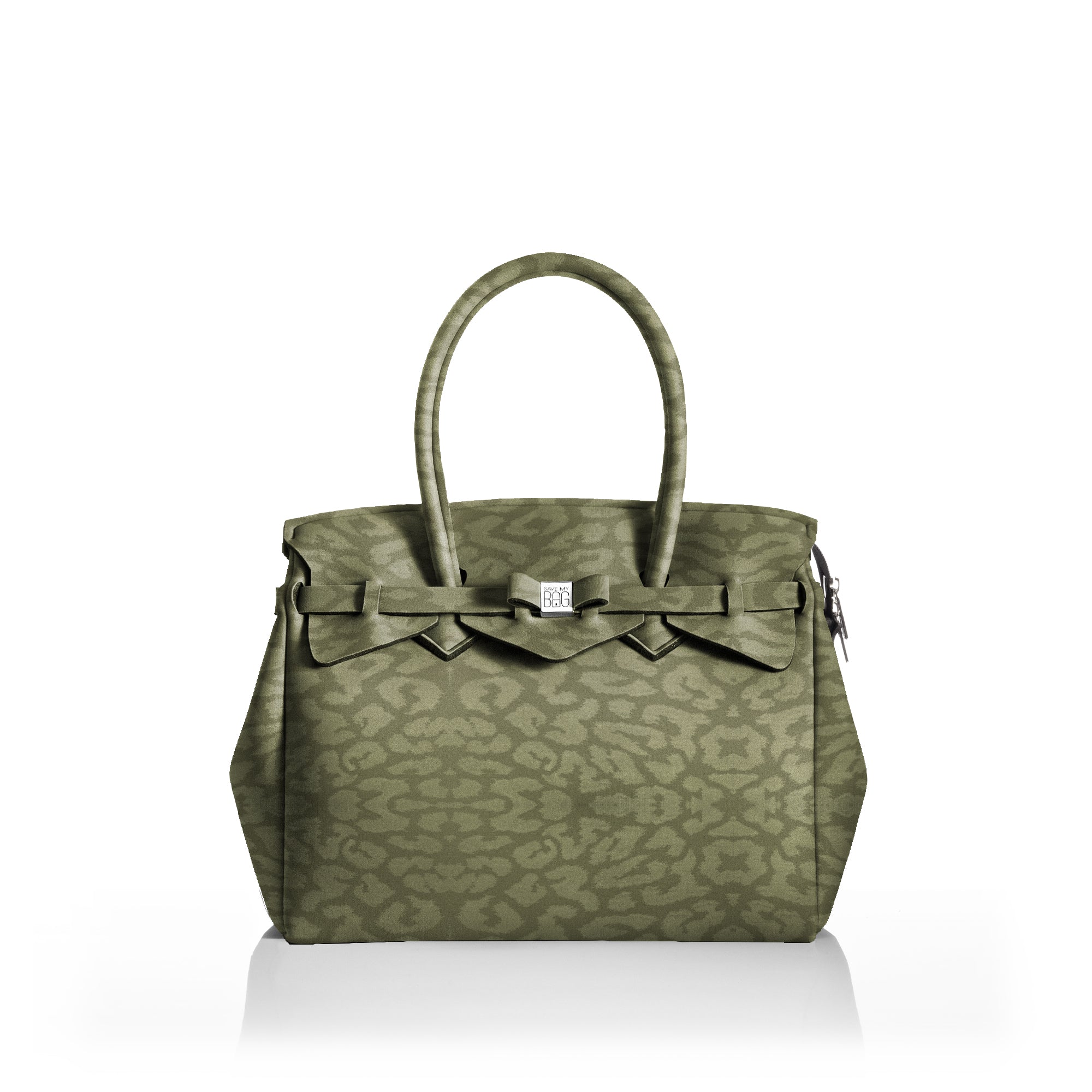 Le sac MISS PLUS de chez Save my bag T120N LEOPARD kaki SATIN