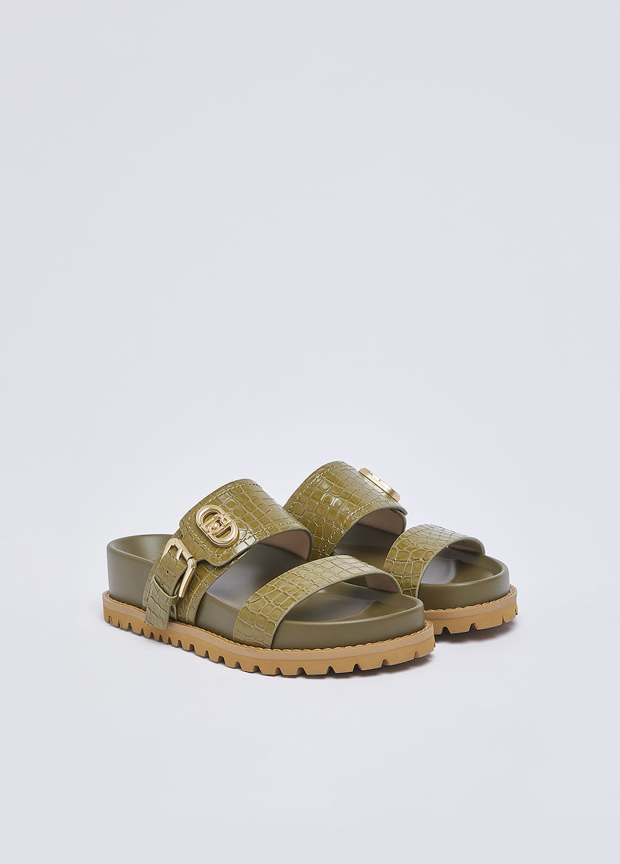 Sandales plates Liu Jo kaki SA6109EX068S4001 façon croco