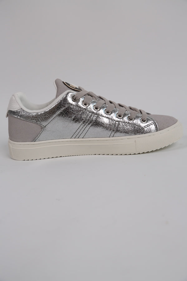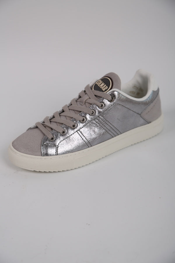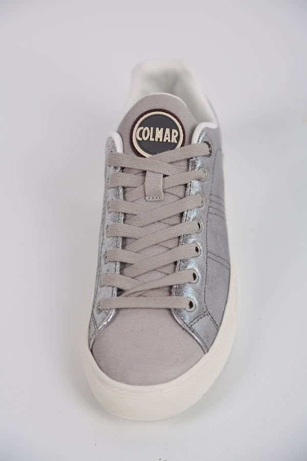 Sneackers Colmar SD14618AW argenté, fermeture par lacets, écusson logo sur languette.