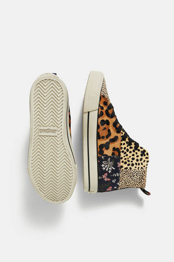Stylées et fashion, les sneakers Desigual vous offrent un magnifique patchwork de textures différentes et d'imprimés de fleurs et animal.