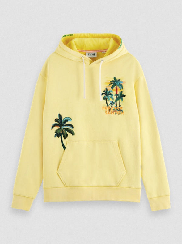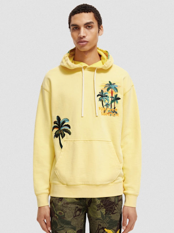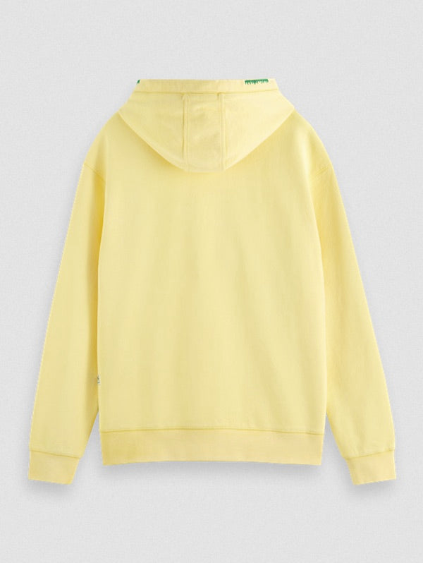 Confectionné en coton jaune agrémenté d'un imprimé tropical, le sweat à capuche signé Scotch and Soda 172308 vous offre une coupe décontractée.
