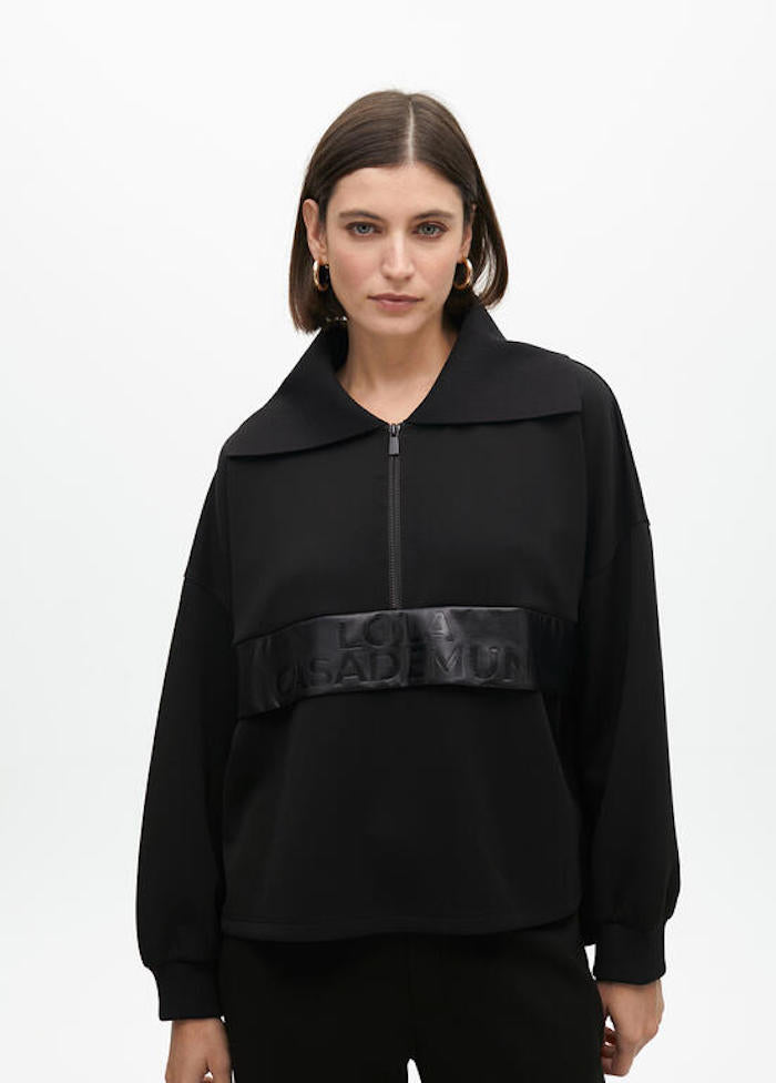 Offrez vous ce sweat femme oversize Lola Casademunt LF2511002 avec sa poche avant effet cuir marqué Lola