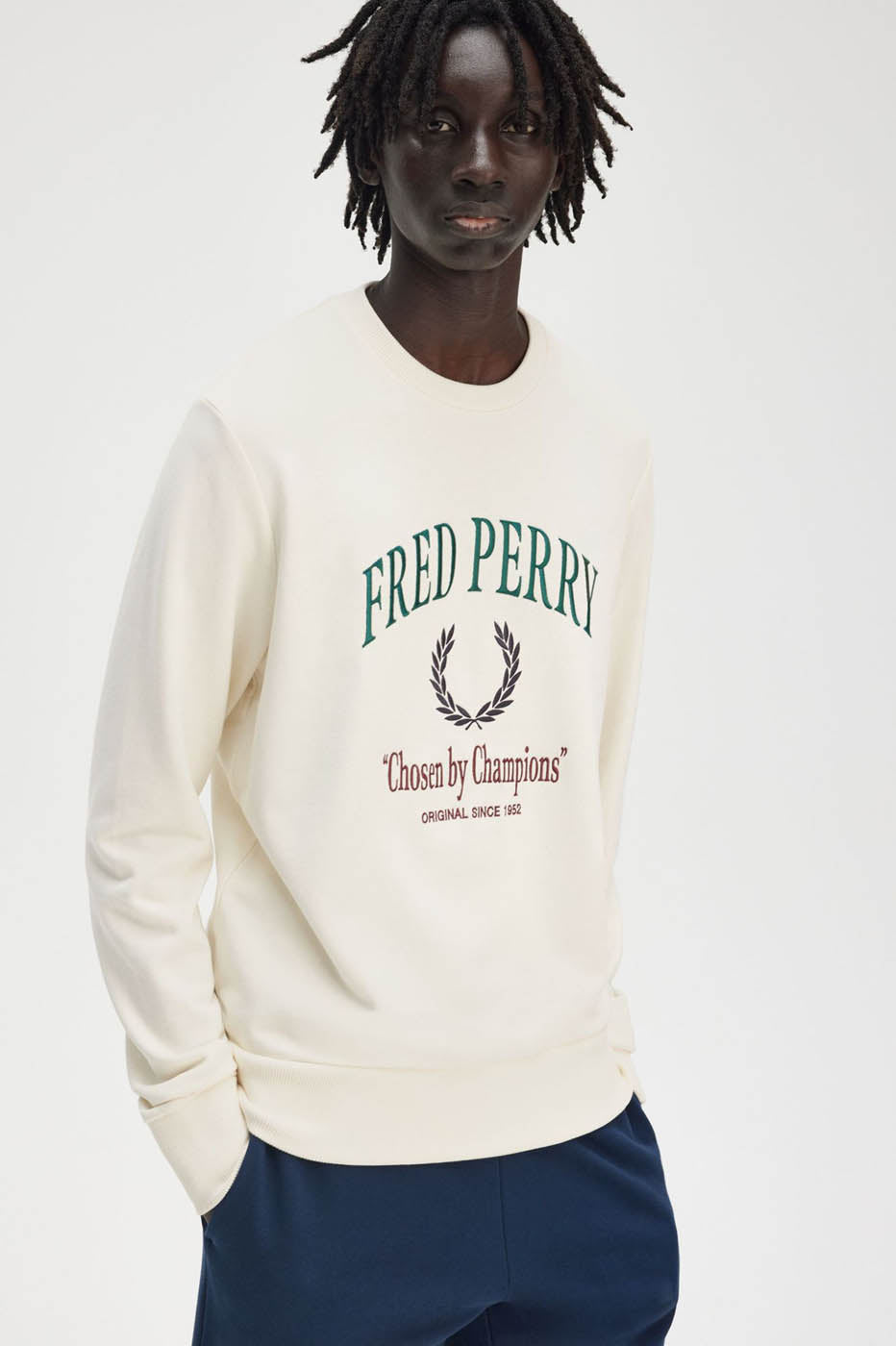 Sweat brodé chosen by champion et couronne de laurier look authentique des débuts de Fred perry