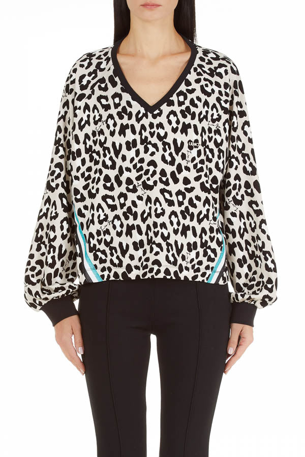 Sweat imprimé léopard col en v à manches longues Liu Jo Sport TF2254J6182 R9242