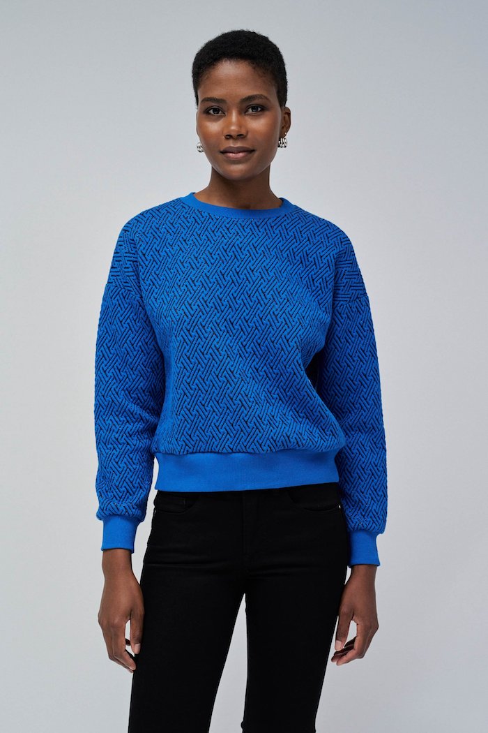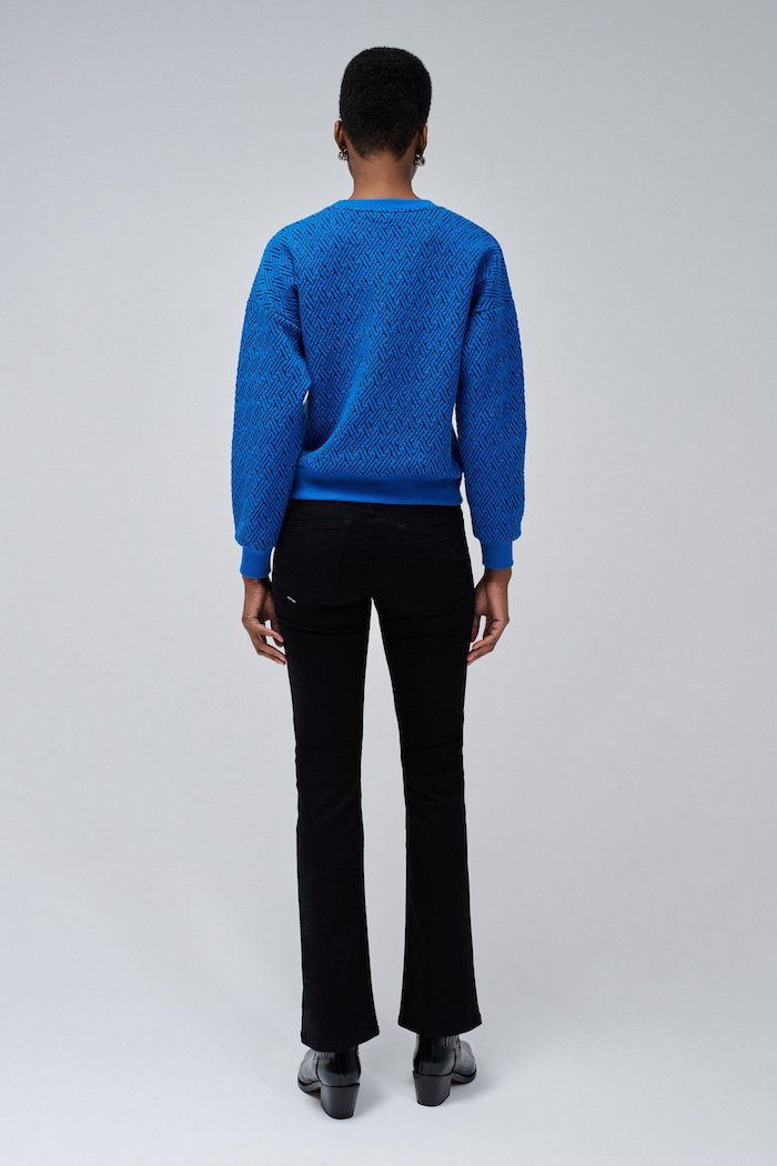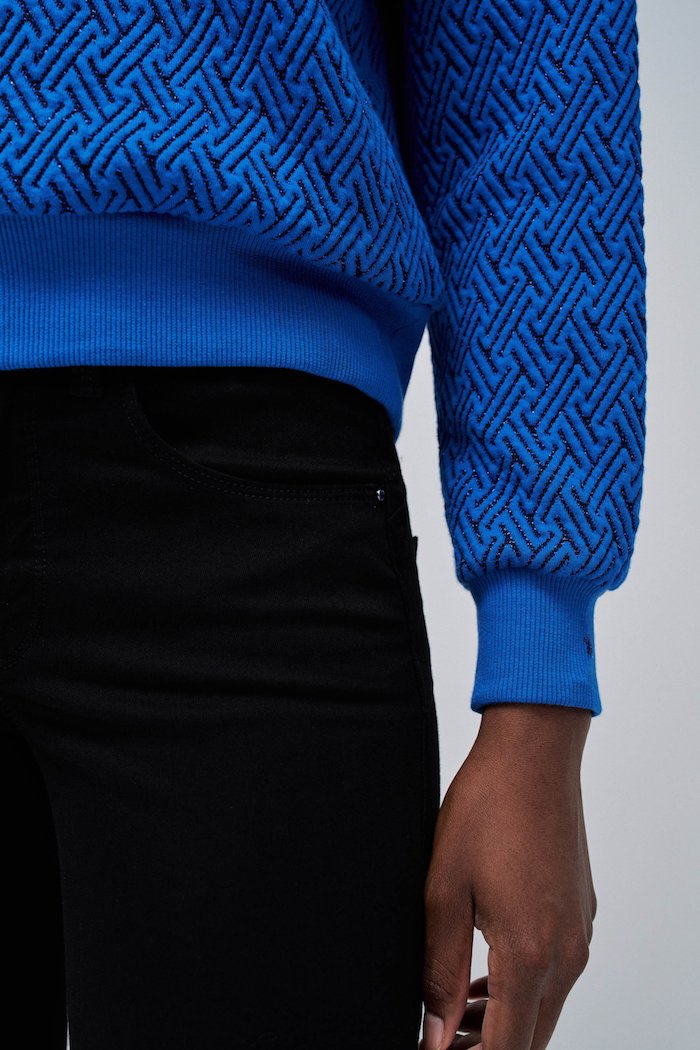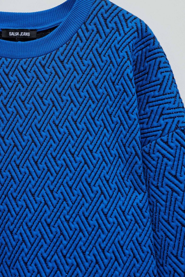 Pour femme ce sweat vous apportera conforte et élégance, avec ses bords cotes et son fil irisé sur une base bleu électrique