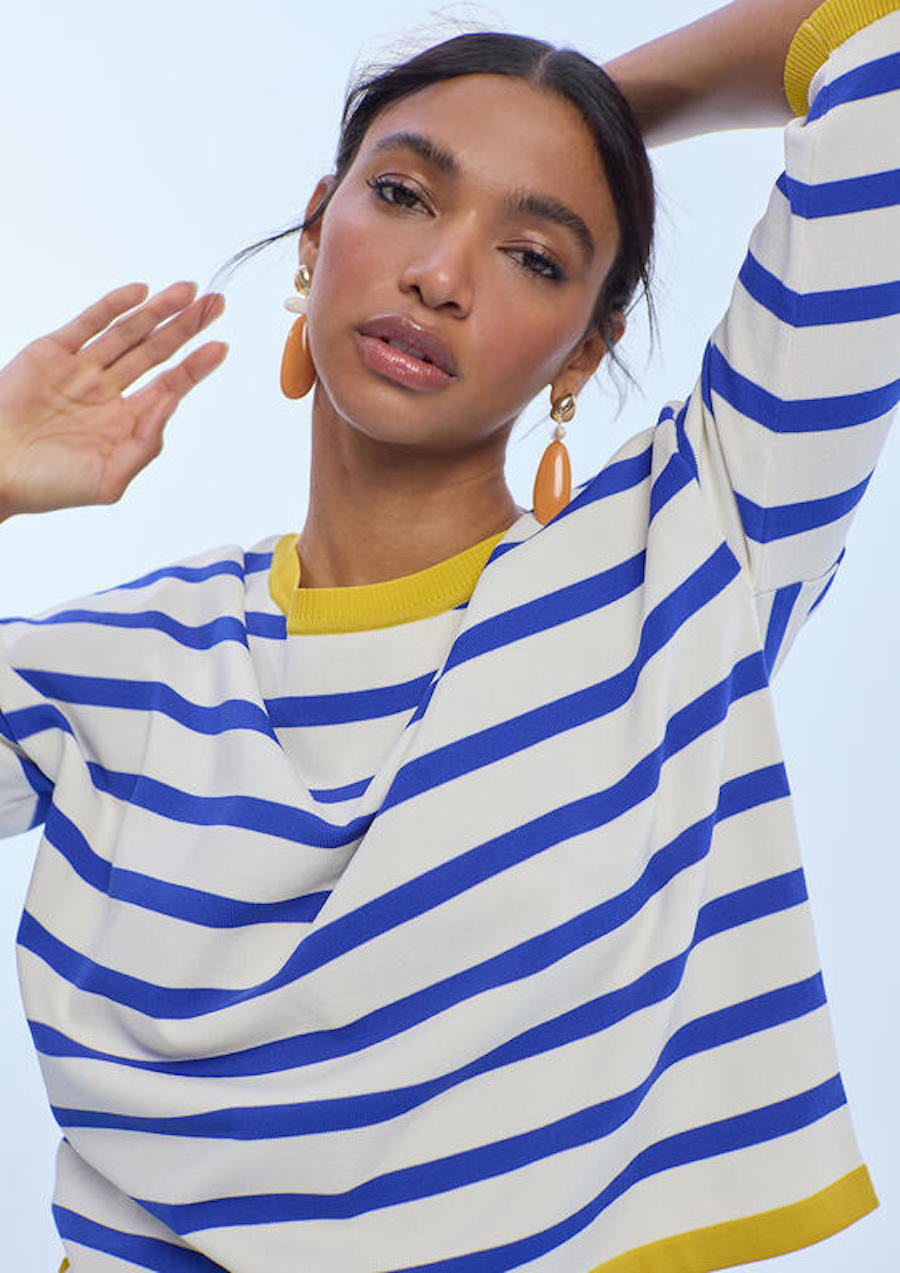 Sweat rayé marin bleu blanc et jaune Lola Casademunt