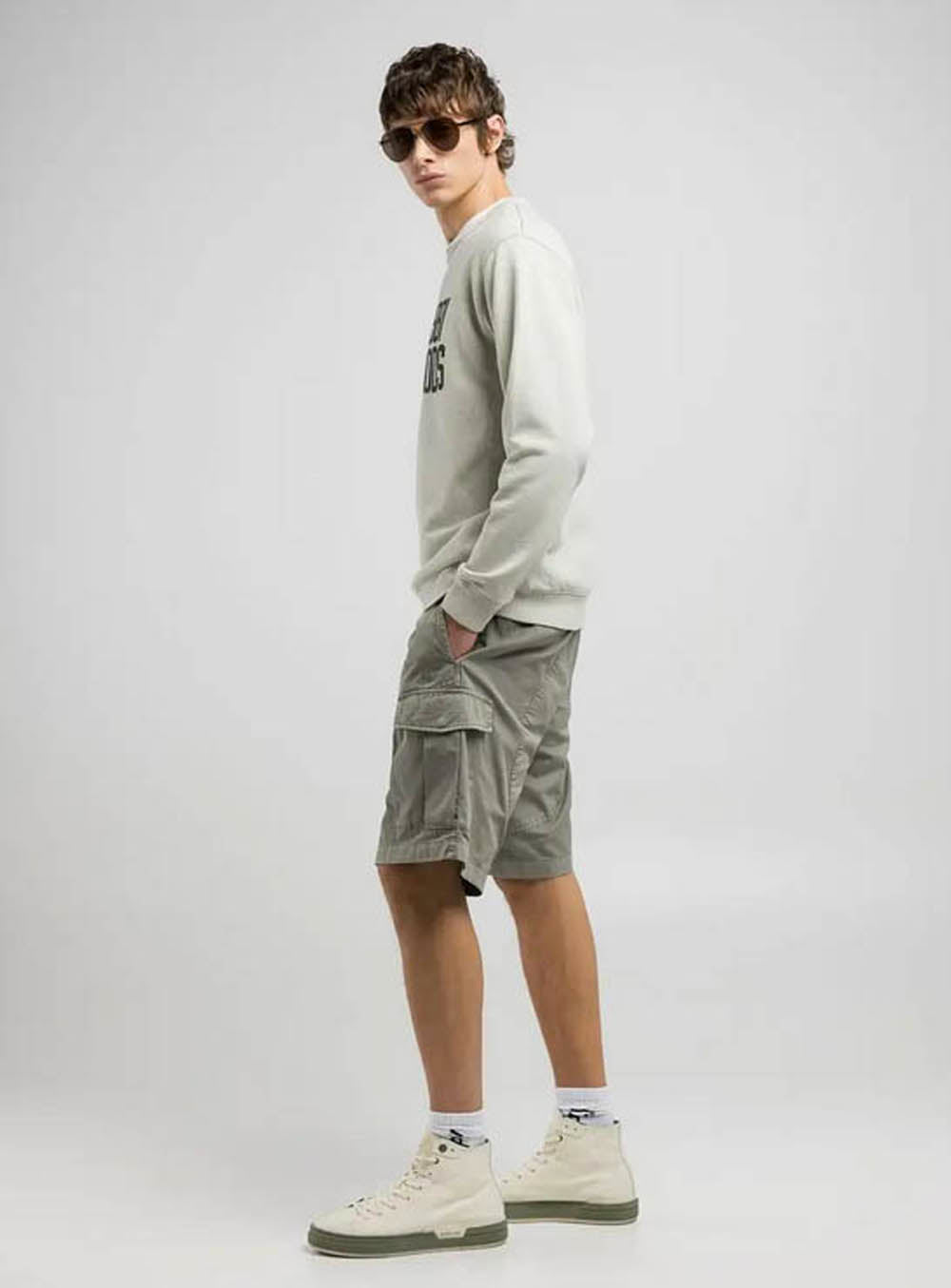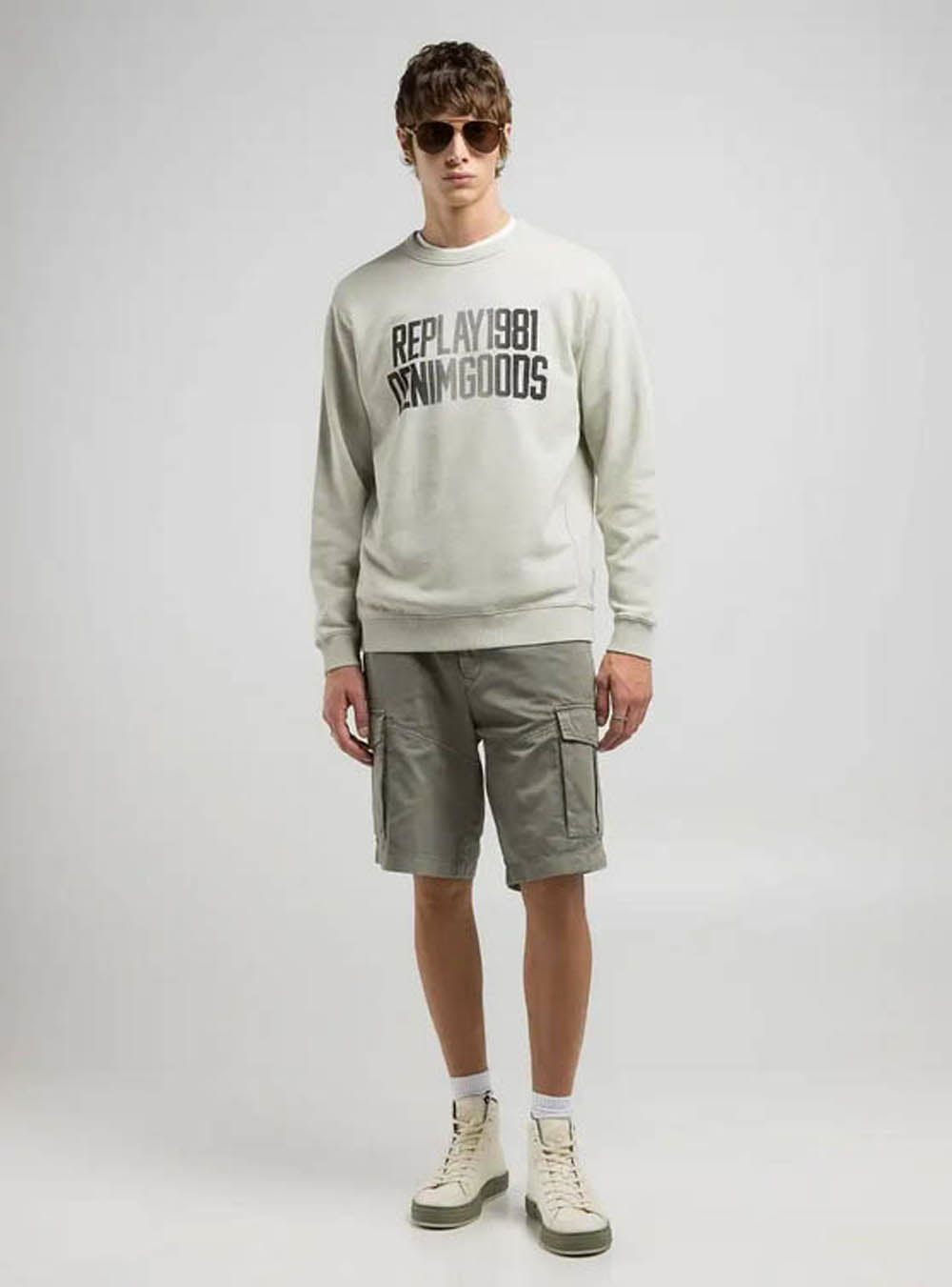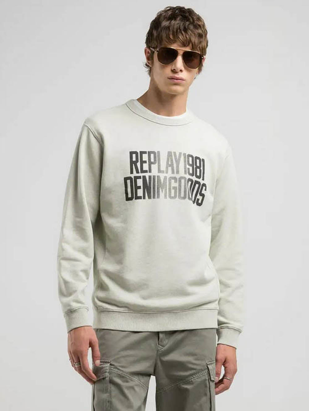 Sweat coll rond manches longues avec bords côtes inscription en lettre sur l' avant