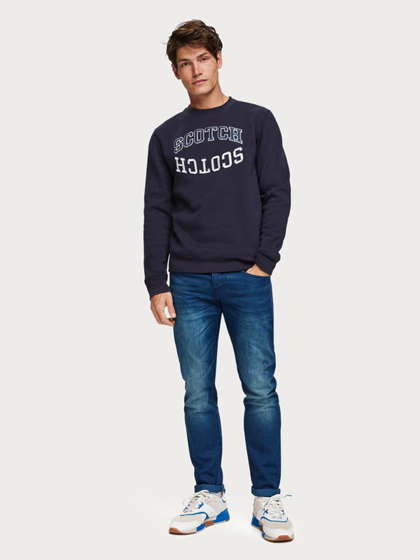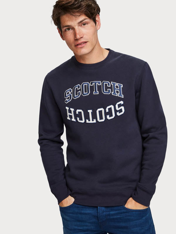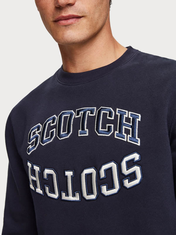 Le sweat-shirt Scotch and Soda est muni de manches longues, d'un col arrondi, d'une finition côtelée et de l'inscription Scotch brodé sur le devant.