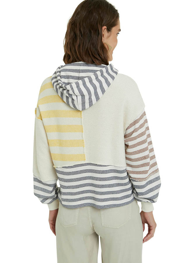 Original avec son effet patchwork porté à l'envers, le sweat-shirt Desigual possède des manches longues, des imprimés rayés et une capuche.