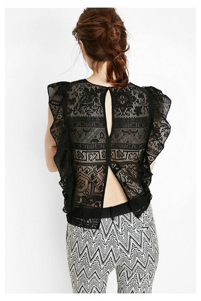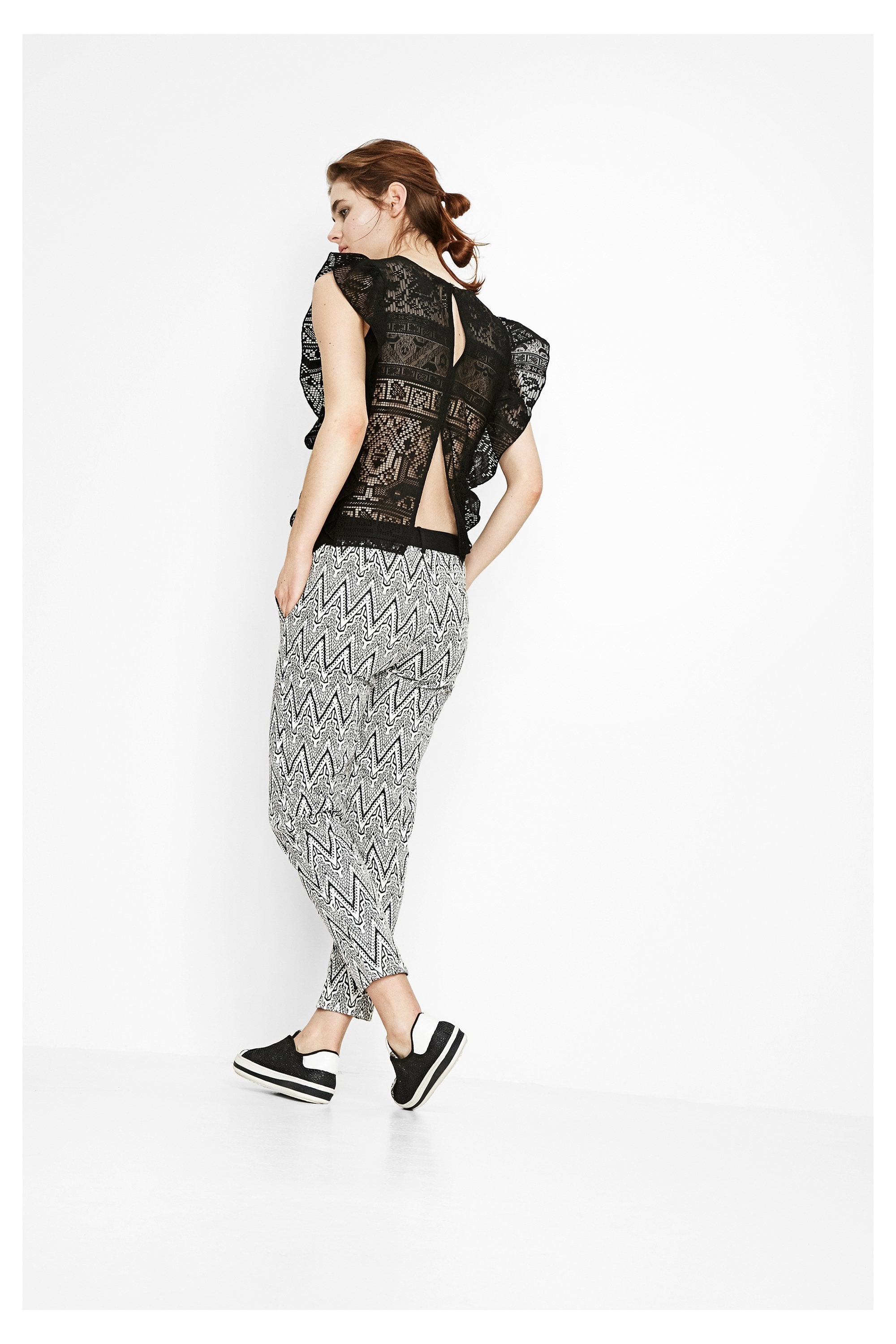 Le T shirt femme Desigual 72T2GF4_2000 est avec des volants et de la dentelles sur les manches, parfait pour l'été.