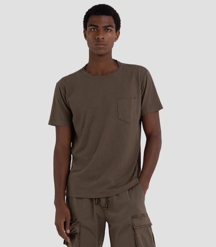 Le t-shirt en lin pour homme M6455 Replay possède un col rond, des manches courtes, une poche plaquée sur la poitrine et vous offre une coupe normale.