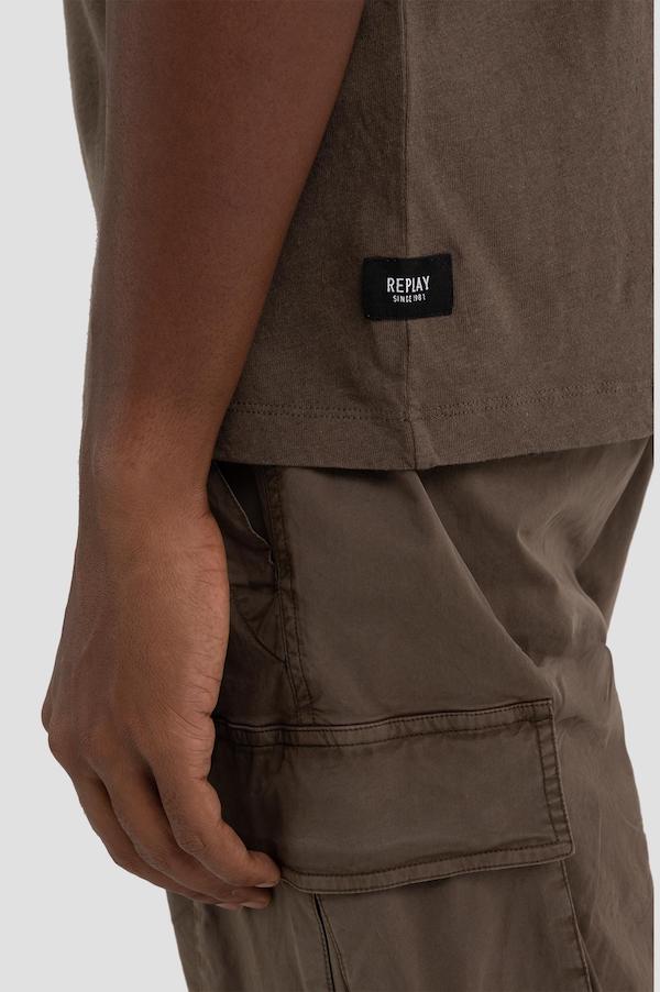 De couleur boue noire, le t-shirt Replay M6455 pour homme a été crée en lin et coton mélangée.