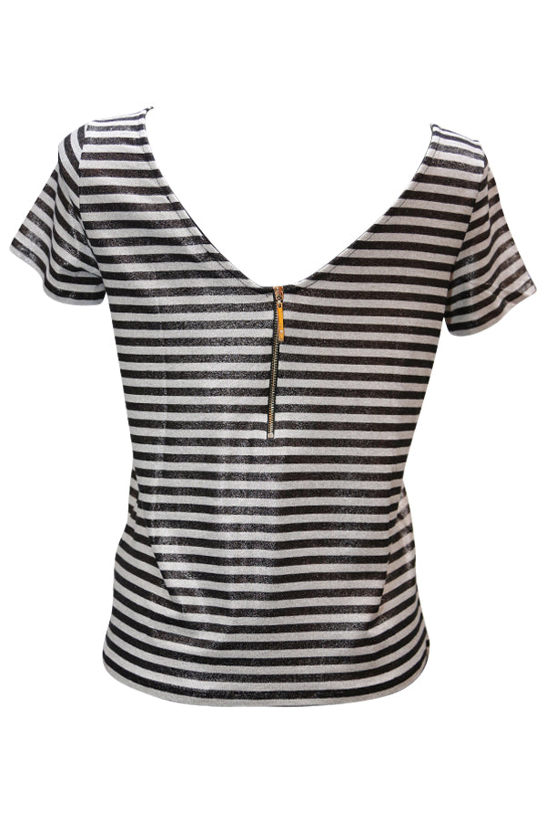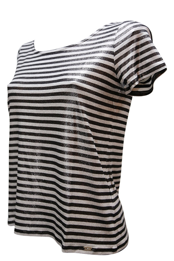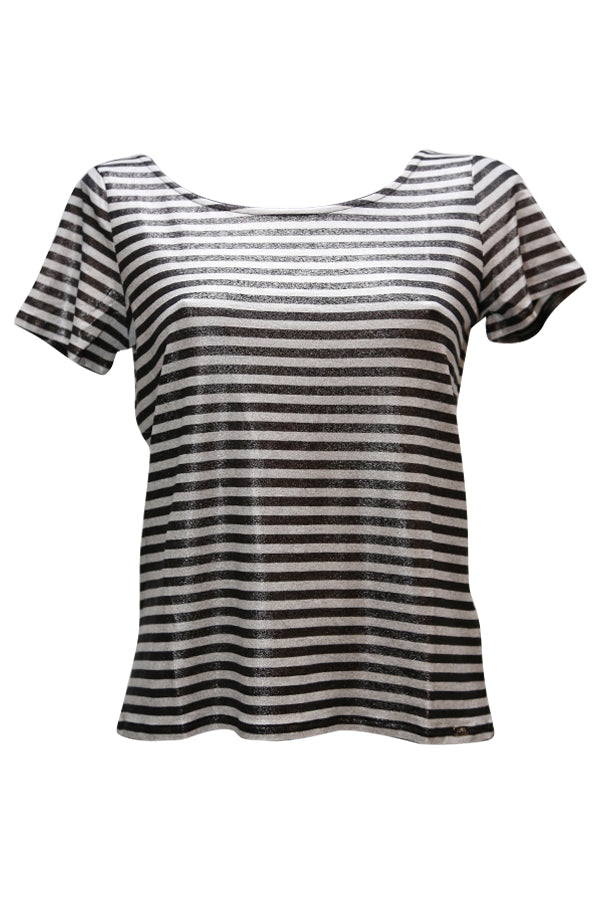 T Shirt Liu Jo en jersey rayé noir et blanc d'aspect SCINTILLANT, une pièce très tendance, indispensable dans votre garde robe.