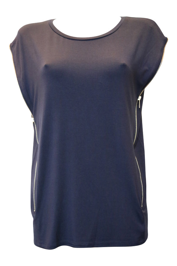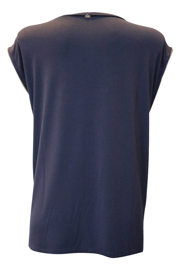 Une encolure arrondie, des manches couvrant légèrement les épaules du T Shirt Liu Jo et des emmanchures très FASHION avec des glissières métal pouvant se régler suivant vos envies.