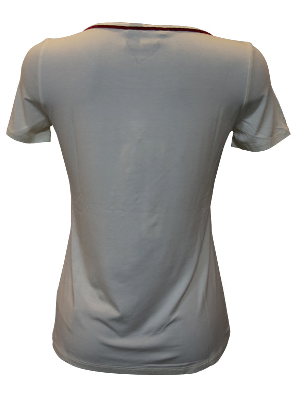 Le T Shirt LIU JO P64051J6995 nous propose des manches courtes et une encolure arrondie avec petit bord rouge.