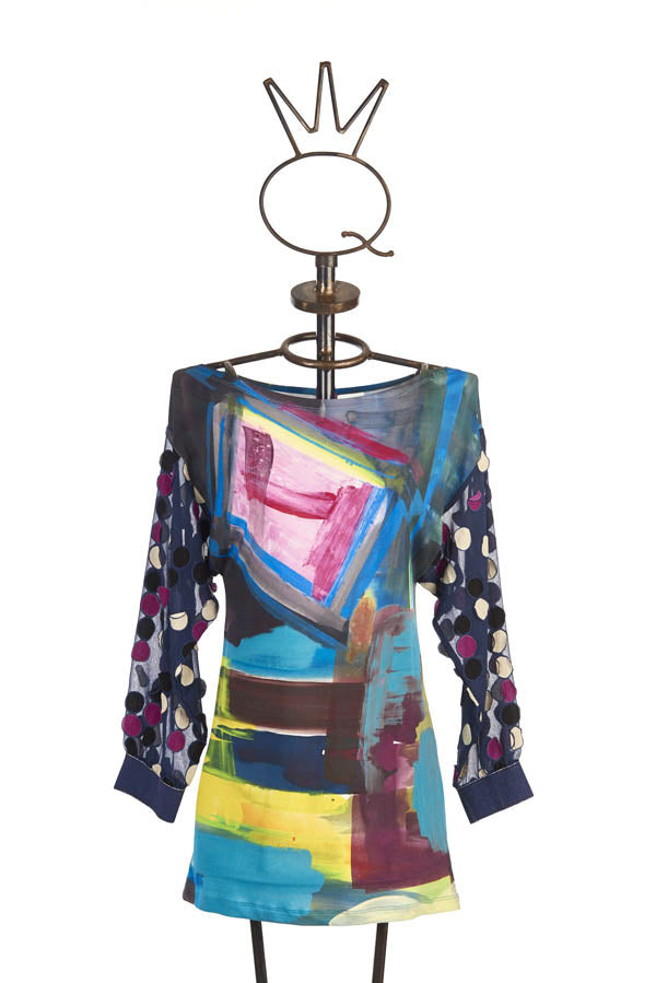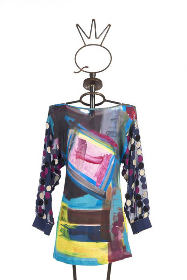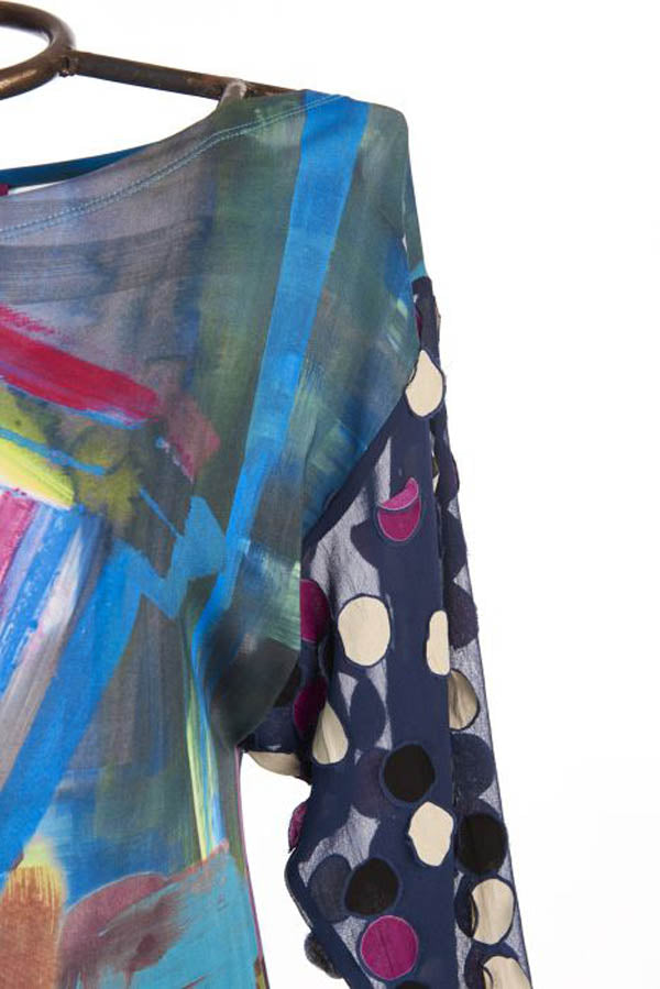 Comme un peintre donnant des coups de pinceaux, la robe Save the Queen nous offre un magnifique imprimé abstrait coloré.
