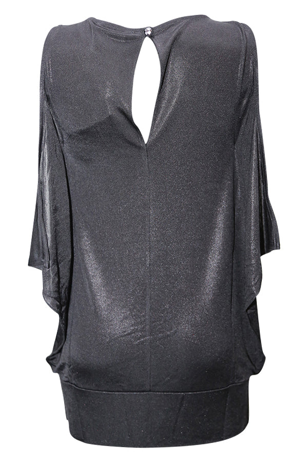 Un jersey noir aspect scintillant pour le top Liu Jo, il est sans manches avec VOLANTS sous l'emmanchure et large bande de finition.