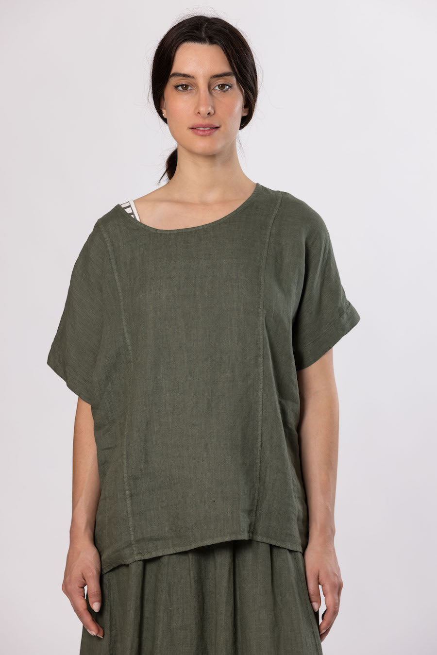 Top manches courtes en lin kaki OMER