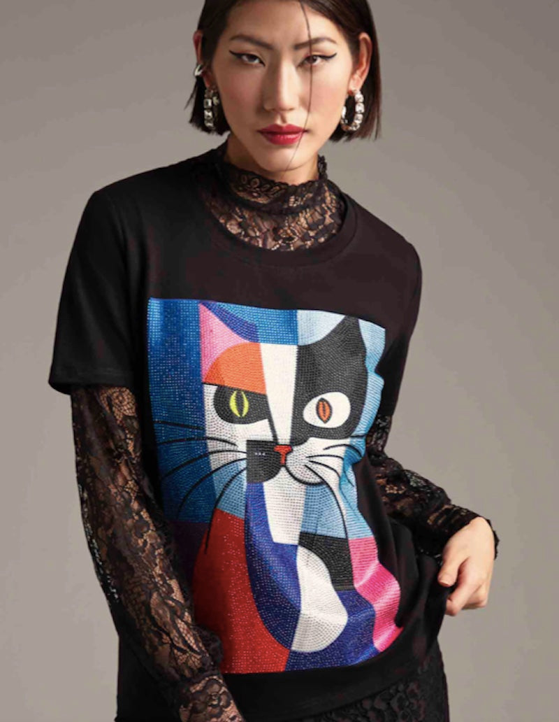 Tshirt avec visage d'un chat en strass Z.O.E.