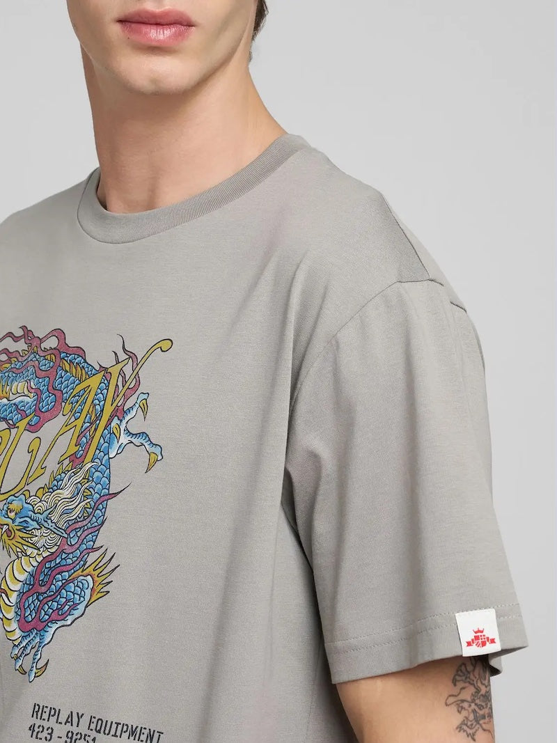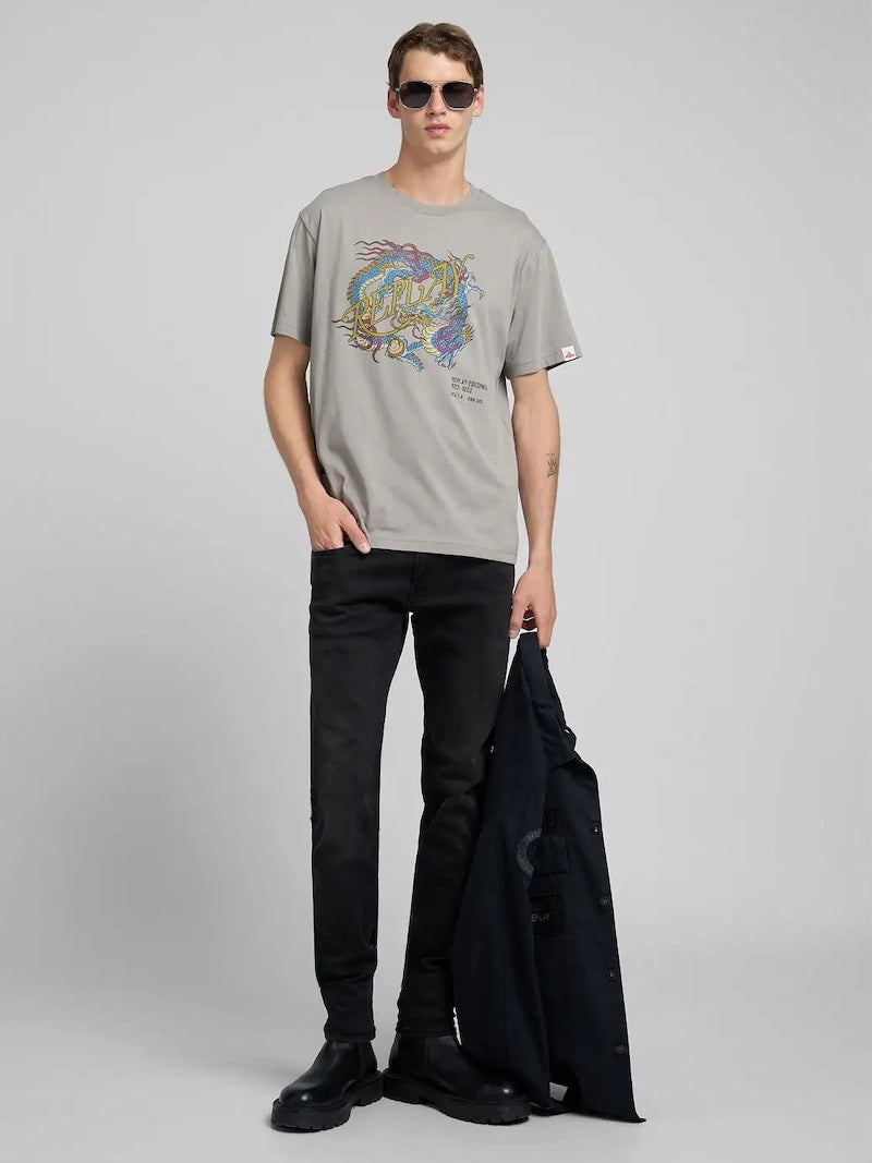 T-shirt homme de la marque Replay Jeans en jersey de coton M3207 000 2660 589 avec imprimé dragon