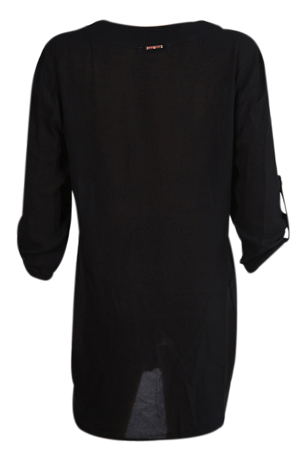 Tunique Liu Jo en tissu fluide et souple noir avec une coupe OVER SIZE avec manches longues ré haussées par pattes boutonnées.