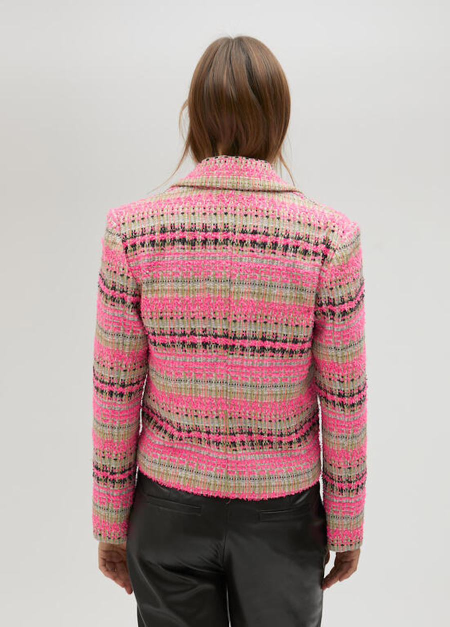Référence de cette belle veste femme motard en tweed rose de chez Lola Casademunt LS2502017