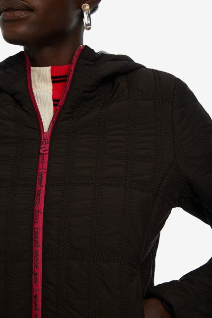 Léger en tissus padded, la veste Desigual vous tiendra chaud! Elle est munie d'une capuche, de 2 poches et d'une fermeture zippée contrastantes.