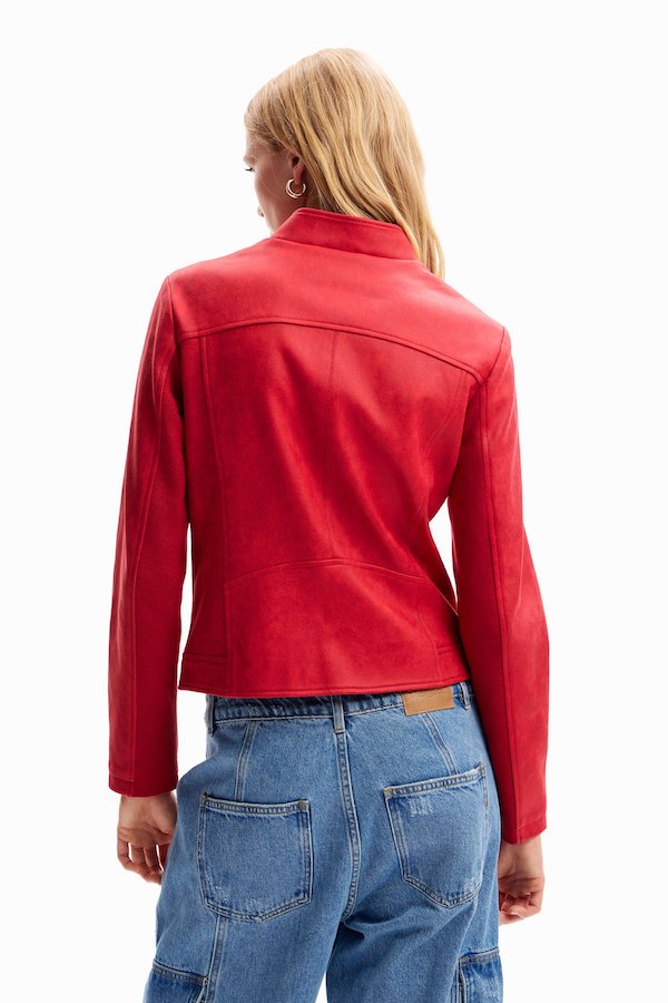 Veste motard Desigual en rouge 23WWEW023005 avec col montant et poches zippés sur l'avant