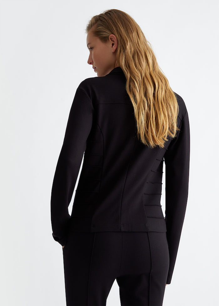 Point de milan pour cette veste femme Liu Jo avec col croisé et glissière logotée