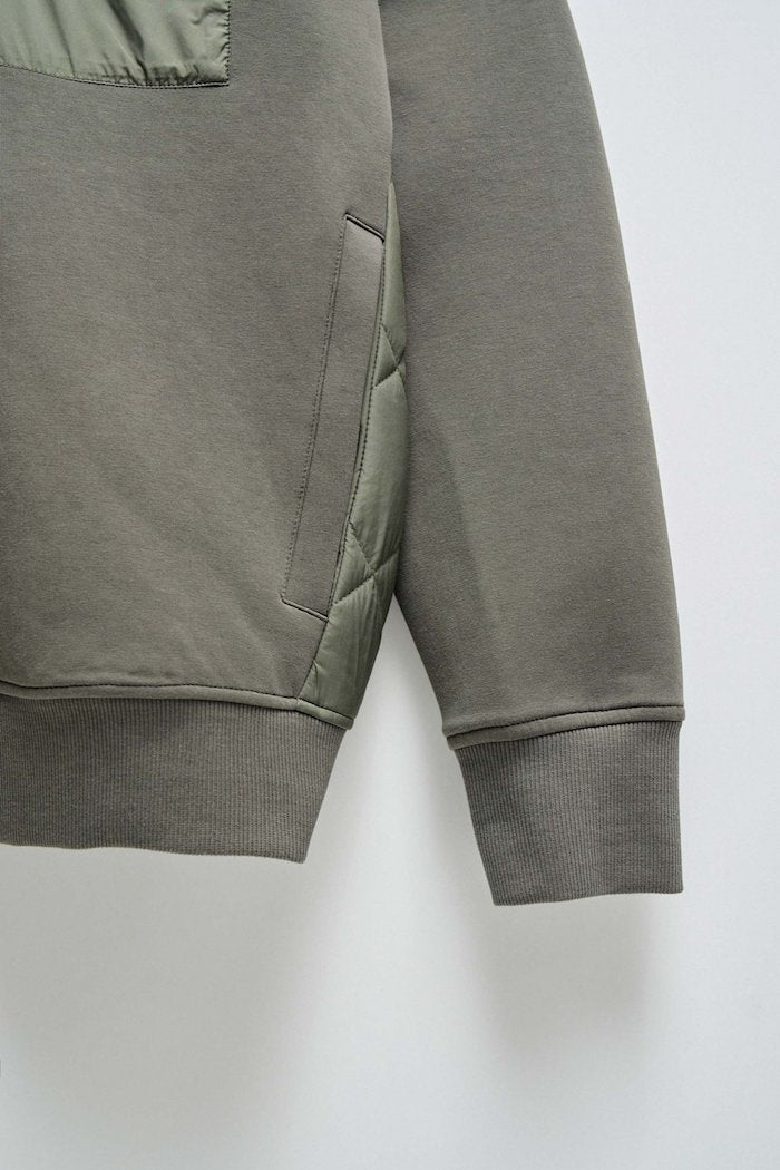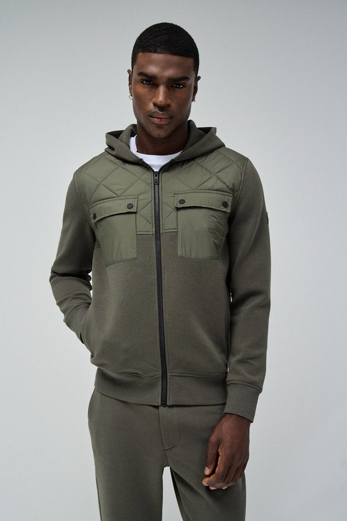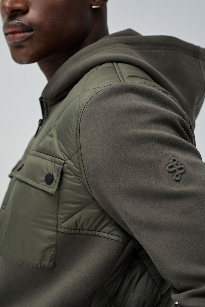 Mélange harmonieux de matière effet matelassé avec zip sur l'avant et poches plaquées sur l'avant