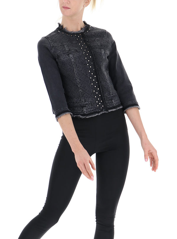 Elle vous est orésentée ici dans une version noir délavée agrémentée de strass et de clous à l'avant