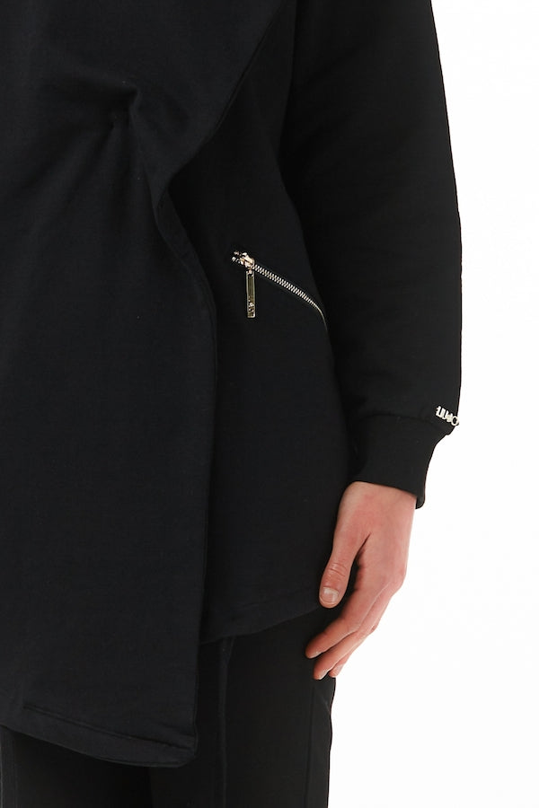 En coton, la veste Liu Jo est munie de manches longues, d'une capuche, des poches zippées et d'une fermeture drapée.