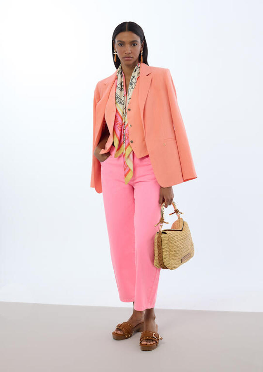 Veste femme souple et légère façon tailleur en lin de chez Lola Casademunt LS2602038 corail